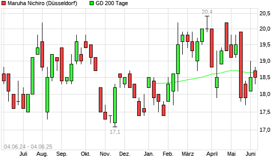 Mit dem Rücksetzer auf 18,60 EUR hat die Maruha Nichiro-Aktie am 03.06.2025 die 200-Tage-Linie nach unten gekreuzt.
