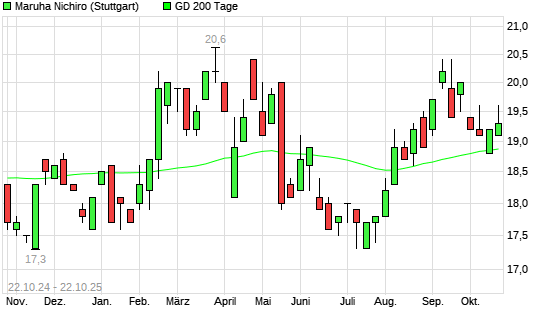 Mit dem Rücksetzer auf 18,90 EUR hat die Maruha Nichiro-Aktie am 21.10.2025 die 200-Tage-Linie nach unten gekreuzt.