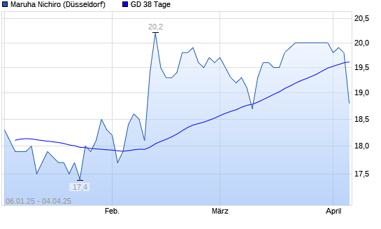 Mit dem Rücksetzer auf 19,70 EUR hat die Maruha Nichiro-Aktie am 03.04.2025 die 38-Tage-Linie nach unten gekreuzt.