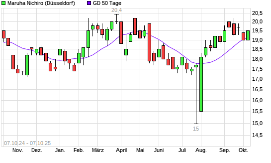 Mit dem Rücksetzer auf 19,10 EUR hat die Maruha Nichiro-Aktie am 06.10.2025 die 50-Tage-Linie nach unten gekreuzt.