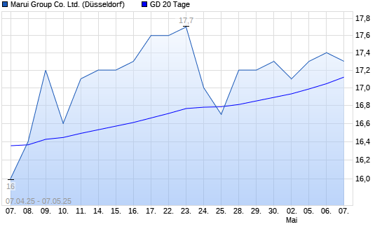 Mit dem Anstieg auf 17,40 EUR hat die Marui Group-Aktie am 06.05.2025 die 20-Tage-Linie nach oben gekreuzt.