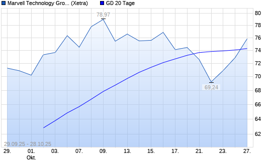 Mit dem Anstieg auf 75,41 EUR hat die Marvell Technlogy Group-Aktie am 27.10.2025 die 20-Tage-Linie nach oben gekreuzt.