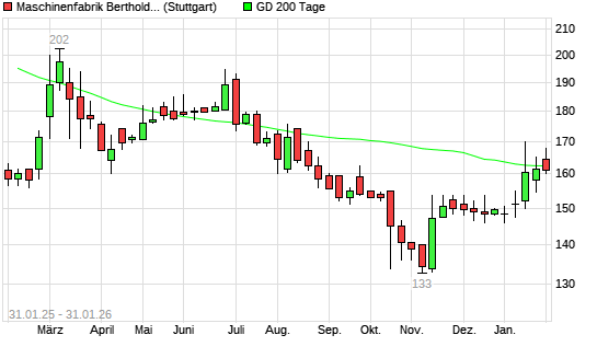 Mit dem Rücksetzer auf 157,50 EUR hat die Maschinenfabrik Berthold Hermle Vz-Aktie am 30.01.2026 die 200-Tage-Linie nach unten gekreuzt.