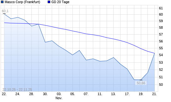 Mit dem Anstieg auf 54,28 EUR hat die Masco-Aktie am 21.11.2025 die 20-Tage-Linie nach oben gekreuzt.