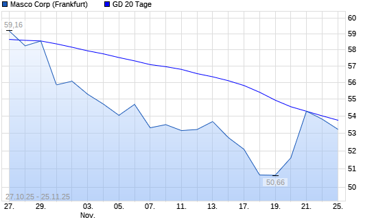 Mit dem Rücksetzer auf 53,82 EUR hat die Masco-Aktie am 24.11.2025 die 20-Tage-Linie nach unten gekreuzt.