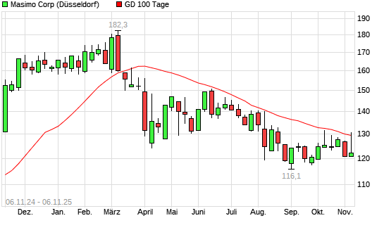 Mit dem Anstieg auf 130,90 EUR hat die Masimo-Aktie am 05.11.2025 die 100-Tage-Linie nach oben gekreuzt.