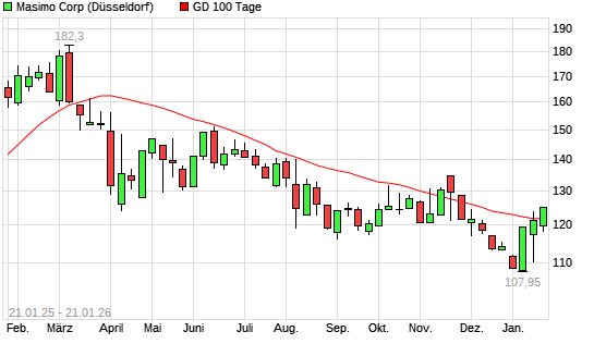 Mit dem Anstieg auf 121,40 EUR hat die Masimo-Aktie am 20.01.2026 die 100-Tage-Linie nach oben gekreuzt.