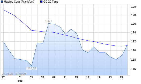 Mit dem Anstieg auf 121,25 EUR hat die Masimo-Aktie am 26.09.2025 die 20-Tage-Linie nach oben gekreuzt.