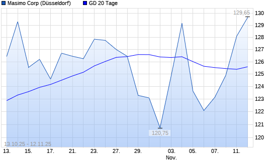 Mit dem Anstieg auf 126,55 EUR hat die Masimo-Aktie am 11.11.2025 die 20-Tage-Linie nach oben gekreuzt.