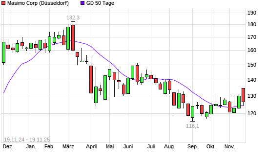 Mit dem Rücksetzer auf 123,65 EUR hat die Masimo-Aktie am 18.11.2025 die 50-Tage-Linie nach unten gekreuzt.