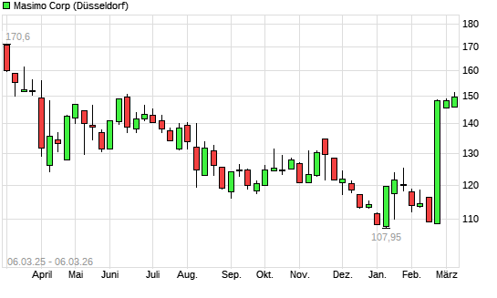 Mit dem Anstieg auf 150,80 EUR hat die Masimo-Aktie (ISIN US5747951003) am 05.03.2026 ein neues 6-Monats-Hoch erreicht und damit den Kurs vom 03.03.2026 eingestellt.Die ...weiterlesen