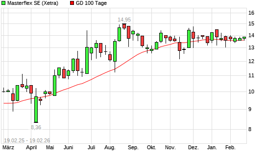 Mit dem Anstieg auf 13,75 EUR hat die Masterflex-Aktie am 18.02.2026 die 100-Tage-Linie nach oben gekreuzt.
