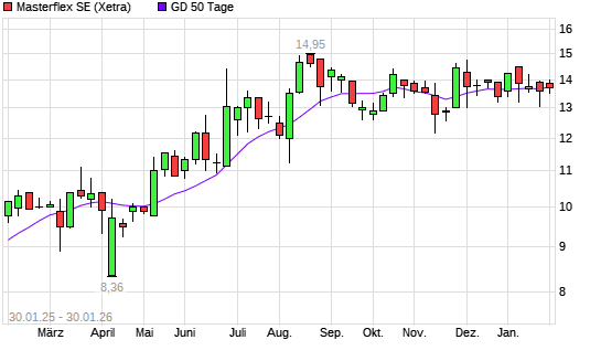 Mit dem Anstieg auf 13,75 EUR hat die Masterflex-Aktie am 29.01.2026 die 50-Tage-Linie nach oben gekreuzt.