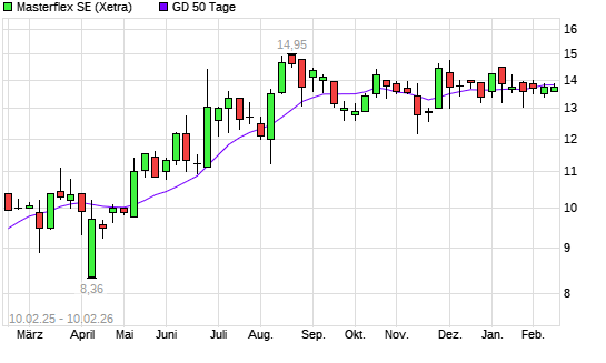 Mit dem Anstieg auf 13,60 EUR hat die Masterflex-Aktie am 09.02.2026 die 50-Tage-Linie nach oben gekreuzt.