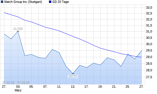 Mit dem Anstieg auf 29,61 EUR hat die Match Group-Aktie am 26.03.2025 die 20-Tage-Linie nach oben gekreuzt.