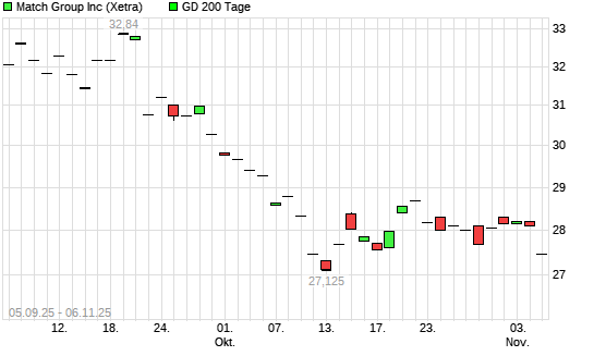 Mit dem Anstieg auf 28,95 EUR hat die Match Group-Aktie am 05.11.2025 die 200-Tage-Linie nach oben gekreuzt.