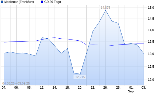 Mit dem Rücksetzer auf 13,37 EUR hat die MaxLinear-Aktie am 02.09.2025 die 20-Tage-Linie nach unten gekreuzt.