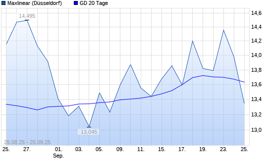 Mit dem Rücksetzer auf 13,64 EUR hat die MaxLinear-Aktie am 24.09.2025 die 20-Tage-Linie nach unten gekreuzt.