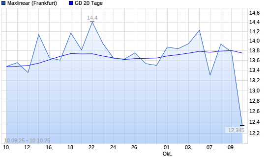 Mit dem Rücksetzer auf 13,77 EUR hat die MaxLinear-Aktie am 09.10.2025 die 20-Tage-Linie nach unten gekreuzt.
