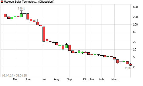 Mit dem Rücksetzer auf 2,52 EUR hat die Maxeon Solar Technologies-Aktie (ISIN SGXZ57724486) am 04.04.2025 ein neues All-Time-Low erreicht und damit den Kurs vom 03.04.2025 eingestellt.