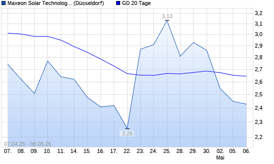 Mit dem Rücksetzer auf 2,54 EUR hat die Maxeon Solar Technologies-Aktie am 05.05.2025 die 20-Tage-Linie nach unten gekreuzt.