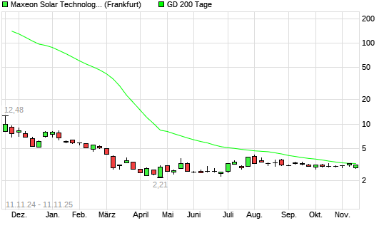 Mit dem Rücksetzer auf 3,10 EUR hat die Maxeon Solar Technologies-Aktie am 10.11.2025 die 200-Tage-Linie nach unten gekreuzt.