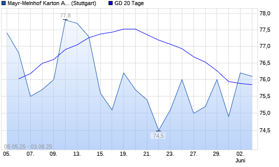 Mit dem Anstieg auf 75,90 EUR hat die Mayr-Melnhof-Aktie am 02.06.2025 die 20-Tage-Linie nach oben gekreuzt.
