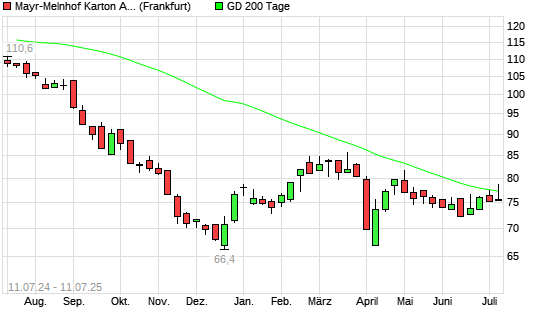 Mit dem Anstieg auf 77,10 EUR hat die Mayr-Melnhof-Aktie am 10.07.2025 die 200-Tage-Linie nach oben gekreuzt.