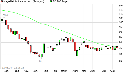 Mit dem Rücksetzer auf 74,50 EUR hat die Mayr-Melnhof-Aktie am 11.08.2025 die 200-Tage-Linie nach unten gekreuzt.