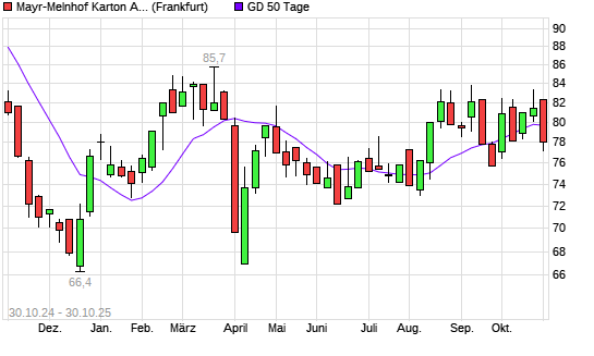 Mit dem Rücksetzer auf 79,70 EUR hat die Mayr-Melnhof-Aktie am 29.10.2025 die 50-Tage-Linie nach unten gekreuzt.