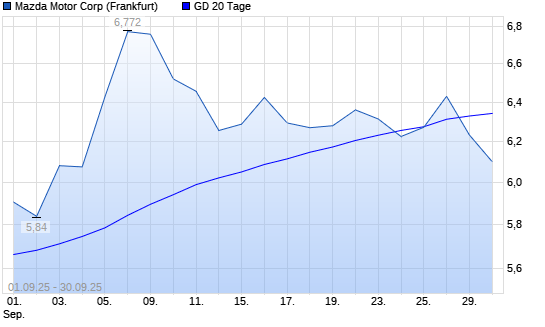 Mit dem Rücksetzer auf 6,23 EUR hat die Mazda Motor-Aktie am 29.09.2025 die 20-Tage-Linie nach unten gekreuzt.