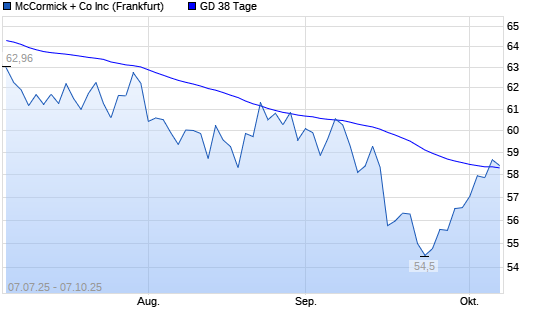 Mit dem Anstieg auf 58,66 EUR hat die McCormick-Aktie am 06.10.2025 die 38-Tage-Linie nach oben gekreuzt.