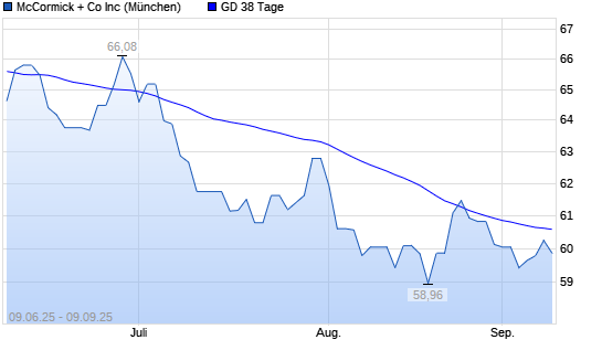 Mit dem Rücksetzer auf 60,26 EUR hat die McCormick-Aktie am 08.09.2025 die 38-Tage-Linie nach unten gekreuzt.