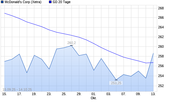 Mit dem Anstieg auf 258,20 EUR hat die McDonald's-Aktie am 13.10.2025 die 20-Tage-Linie nach oben gekreuzt.