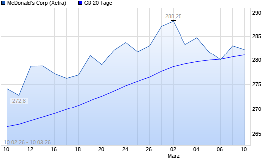 Mit dem Anstieg auf 284,75 EUR hat die McDonald's-Aktie am 09.03.2026 die 20-Tage-Linie nach oben gekreuzt.