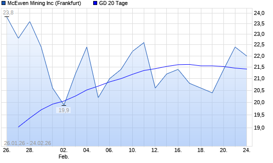 Mit dem Anstieg auf 22,40 EUR hat die McEwen Mining-Aktie am 23.02.2026 die 20-Tage-Linie nach oben gekreuzt.