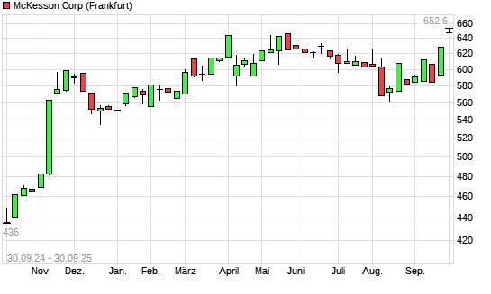 Mit dem Anstieg auf 652,60 EUR hat die McKesson-Aktie (ISIN US58155Q1031) am 29.09.2025 ein neues All-Time-High erreicht und damit den Kurs vom 25.09.2025 eingestellt.