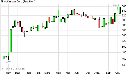 Mit dem Anstieg auf 656,60 EUR hat die McKesson-Aktie (ISIN US58155Q1031) am 10.10.2025 ein neues All-Time-High erreicht und damit den Kurs vom 01.10.2025 eingestellt.