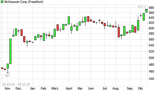 Mit dem Anstieg auf 672,20 EUR hat die McKesson-Aktie (ISIN US58155Q1031) am 15.10.2025 ein neues All-Time-High erreicht und damit den Kurs vom 13.10.2025 eingestellt.