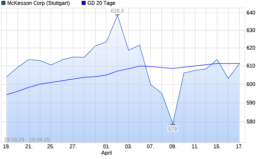 Mit dem Anstieg auf 611,40 EUR hat die McKesson-Aktie am 18.04.2025 die 20-Tage-Linie nach oben gekreuzt.