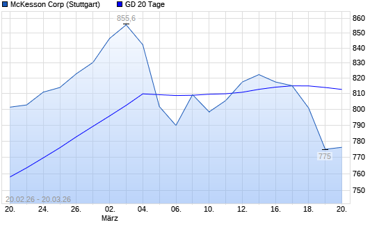 Mit dem Rücksetzer auf 796,60 EUR hat die McKesson-Aktie am 19.03.2026 die 20-Tage-Linie nach unten gekreuzt.