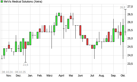 Mit dem Anstieg auf 26,00 EUR hat die MeVis Medical Solutions-Aktie (ISIN DE000A0LBFE4) am 07.10.2025 ein neues 6-Monats-Hoch erreicht und damit den Kurs vom 04.09.2025 eingestellt.