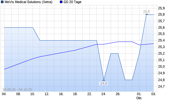 Mit dem Anstieg auf 25,40 EUR hat die MeVis Medical Solutions-Aktie am 03.10.2025 die 20-Tage-Linie nach oben gekreuzt.