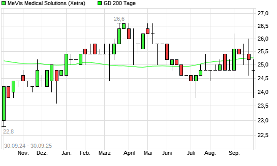 Mit dem Anstieg auf 24,80 EUR hat die MeVis Medical Solutions-Aktie am 29.09.2025 die 200-Tage-Linie nach oben gekreuzt.