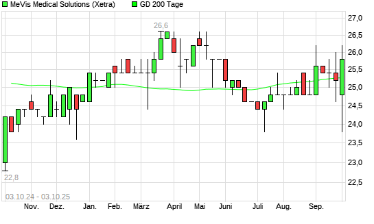 Mit dem Anstieg auf 24,80 EUR hat die MeVis Medical Solutions-Aktie am 02.10.2025 die 200-Tage-Linie nach oben gekreuzt.