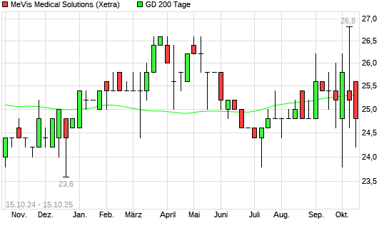 Mit dem Anstieg auf 24,80 EUR hat die MeVis Medical Solutions-Aktie am 14.10.2025 die 200-Tage-Linie nach oben gekreuzt.