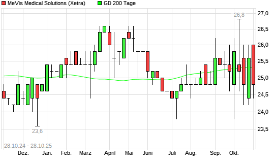 Mit dem Anstieg auf 25,20 EUR hat die MeVis Medical Solutions-Aktie am 27.10.2025 die 200-Tage-Linie nach oben gekreuzt.