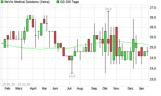 Mit dem Rücksetzer auf 24,40 EUR hat die MeVis Medical Solutions-Aktie am 14.01.2026 die 200-Tage-Linie nach unten gekreuzt.