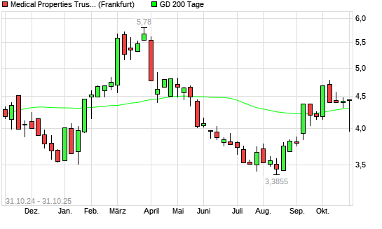 Mit dem Anstieg auf 4,37 EUR hat die Medical Properties Trust-Aktie am 30.10.2025 die 200-Tage-Linie nach oben gekreuzt.
