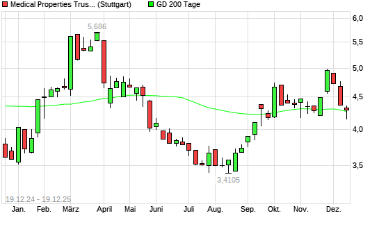 Mit dem Anstieg auf 4,32 EUR hat die Medical Properties Trust-Aktie am 18.12.2025 die 200-Tage-Linie nach oben gekreuzt.